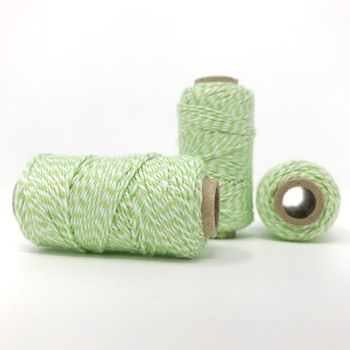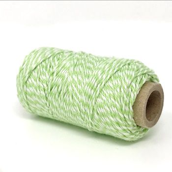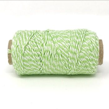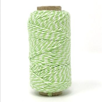 Twisted from 2 threads (1 x lightgreen, 1 x white)